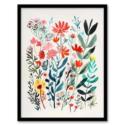 Artery8 Spring Wildflowers Bright Abstract Watercolour Living Room Artwork Framed Wall Art Print A4