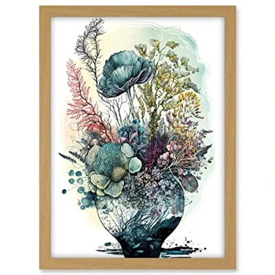 Artery8 Spring Wildflowers Growing in a Glass Flower Pot Artwork Framed A3 Wall Art Print
