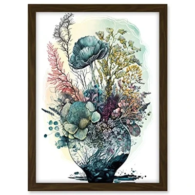 Artery8 Spring Wildflowers Growing in a Glass Flower Pot Artwork Framed A3 Wall Art Print