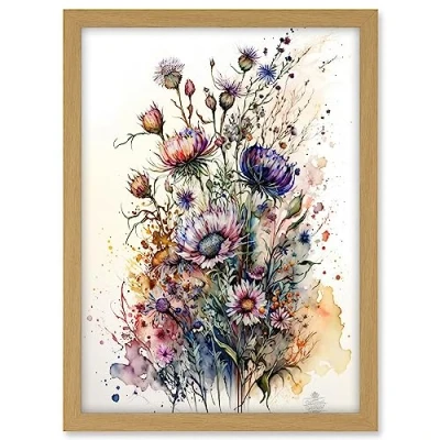 Artery8 Spring Wildflowers Watercolour Boho Illustration Artwork Framed A3 Wall Art Print
