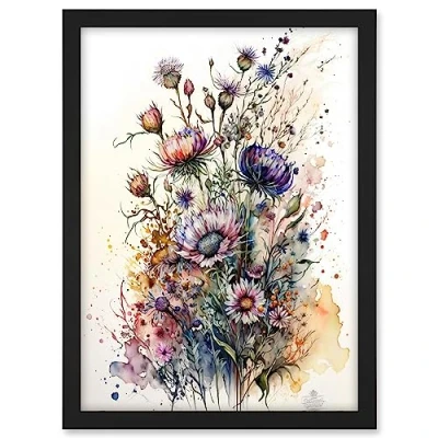Artery8 Spring Wildflowers Watercolour Boho Illustration Artwork Framed A3 Wall Art Print