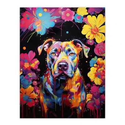 Artery8 Staffordshire Bull Terrier Dog Lover Gift Pet Portrait Vibrant Blue Orange Purple Artwork Painting Large Wall Art Poster Print Thick Paper 18X24 Inch