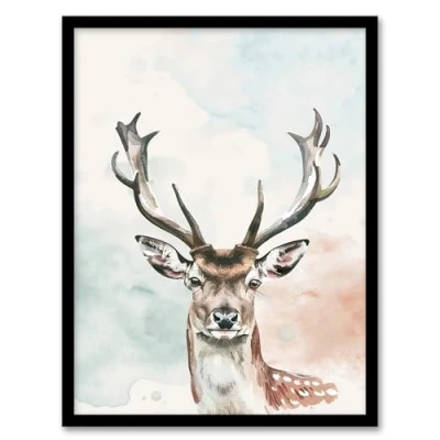 Artery8 Stag Head Portrait Modern Watercolour Pastel Living Room Artwork Framed Wall Art Print A4