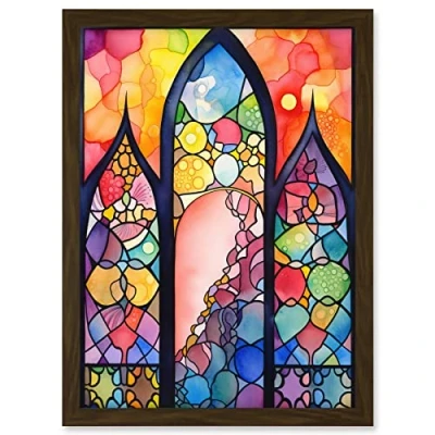 Artery8 Stained Glass Window Folk Art Abstract Artwork Framed A3 Wall Print