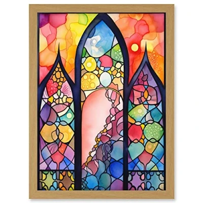 Artery8 Stained Glass Window Folk Art Abstract Artwork Framed A3 Wall Print