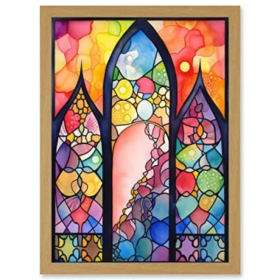 Artery8 Stained Glass Window Folk Art Abstract Artwork Framed Wall Print A4