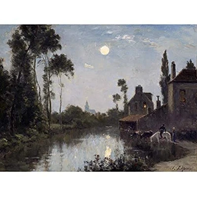 Artery8 Stanislas Lepine Moonlit River C1866 Painting Unframed Wall Art Print Poster Home Decor Premium