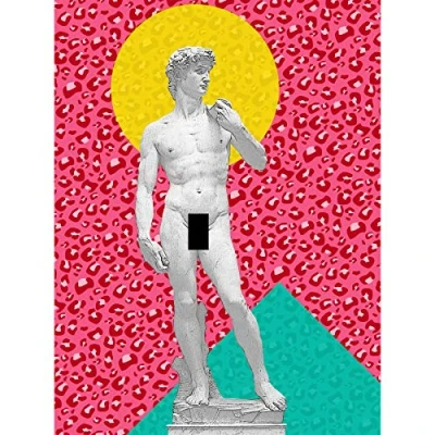 Artery8 Statue of David by Michelangelo Classic with Abstract Art 80s Leopard Large Wall Poster Print Thick Paper 18X24 Inch