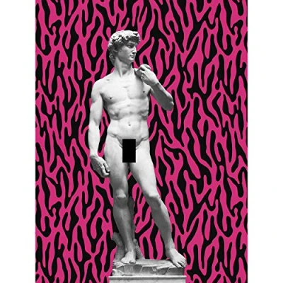 Artery8 Statue of David by Michelangelo Classic with Abstract Art Pink Bright Stripes Large Wall Poster Print Thick Paper 18X24 Inch