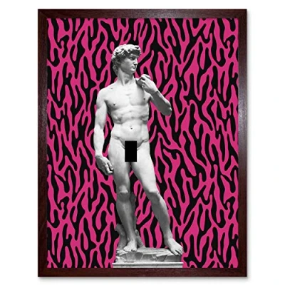 Artery8 Statue of David by Michelangelo Classic with Abstract Art Pink Bright Stripes Print Framed Poster Wall Decor 12x16 inch