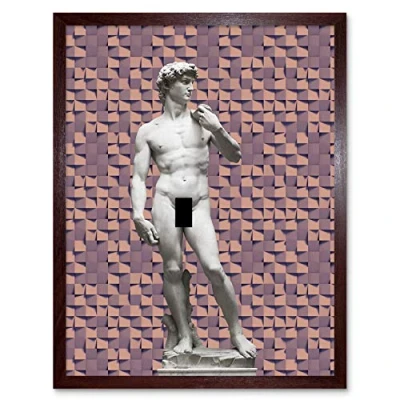 Artery8 Statue of David by Michelangelo Classic with Abstract Art Pink Cubes Print Framed Poster Wall Decor 12x16 inch