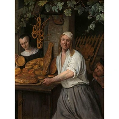 Artery8 Steen The Baker And Wife Arent Oostwaard Painting Premium Wall Art Canvas Print 18X24 Inch