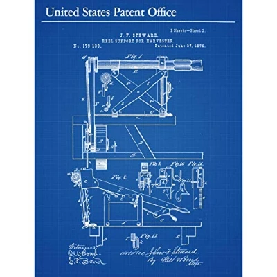 Artery8 Steward Harvester Reel Support 1876 Side Farming Patent Premium Wall Art Canvas Print 18X24 Inch