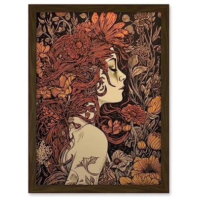 Artery8 Stop and Smell the Flowers Boho Woman in Field Artwork Framed A3 Wall Art Print