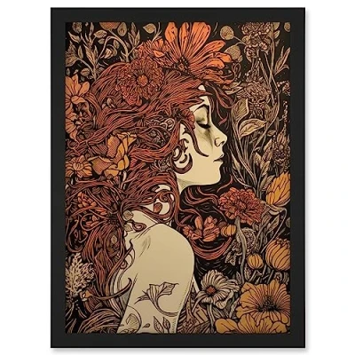Artery8 Stop and Smell the Flowers Boho Woman in Field Artwork Framed A3 Wall Art Print