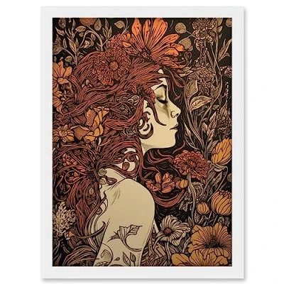 Artery8 Stop and Smell the Flowers Boho Woman in Field Artwork Framed Wall Art Print A4