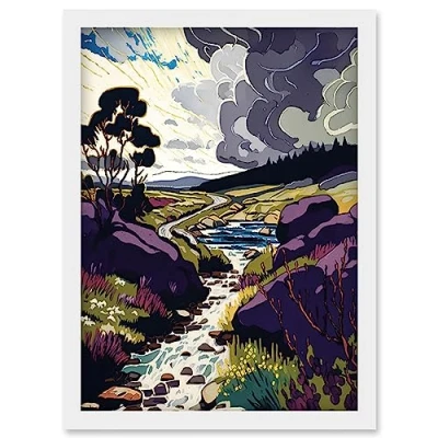Artery8 Stormy Clouds over Stream Wild Scottish Landscape Artwork Framed Wall Art Print A4