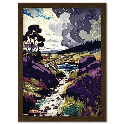 Artery8 Stormy Clouds over Stream Wild Scottish Landscape Artwork Framed Wall Art Print A4