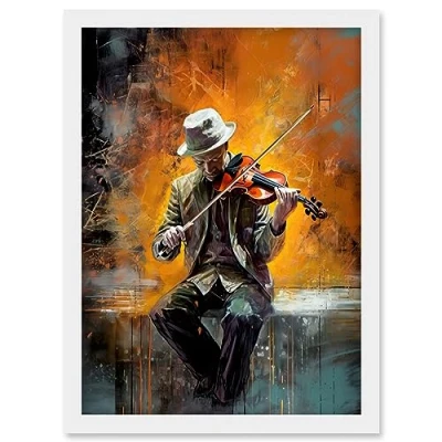 Artery8 Street Musician Playing Jazz Music on his Violin Artwork Framed Wall Art Print A4