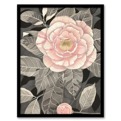 Artery8 Stylised Pink Camellia Flower Pastel Colour Living Room Artwork Framed Wall Art Print A4