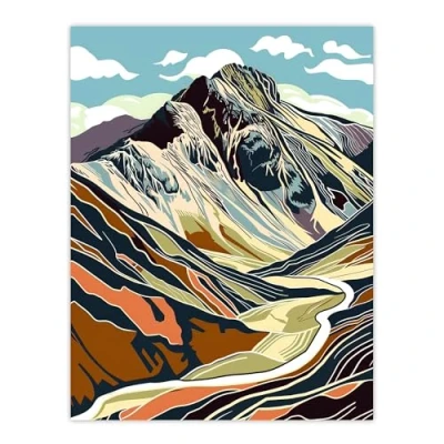 Artery8 Stylised Scafell Pike Mountain Hiking Cambria Living Room Extra Large XL Wall Art Poster Print