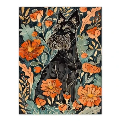 Artery8 Stylised Scottish Terrier Dog with Peony Flowers Living Room Large Wall Art Poster Print Thick Paper 18X24 Inch