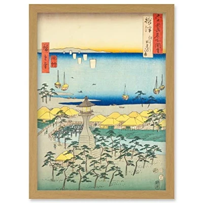 Artery8 Sumiyoshi, Idemi Beach Settsu Province Utagawa Hiroshige Japanese Woodblock Artwork Framed Wall Art Print A4
