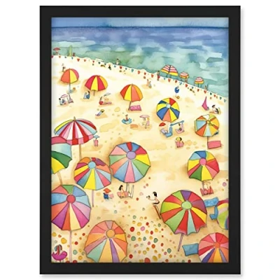 Artery8 Summer Beach Sunshine Folk Art Artwork Framed A3 Wall Print