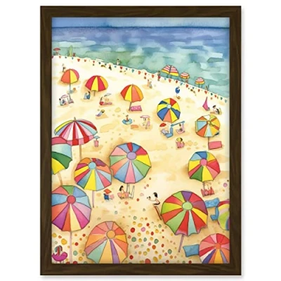 Artery8 Summer Beach Sunshine Folk Art Artwork Framed A3 Wall Print
