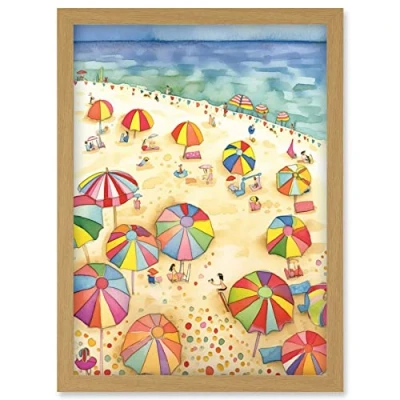 Artery8 Summer Beach Sunshine Folk Art Artwork Framed Wall Print A4