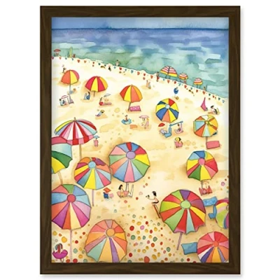 Artery8 Summer Beach Sunshine Folk Art Artwork Framed Wall Print A4