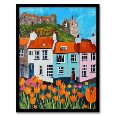 Artery8 Summer Day in English Town Tulips Colourful Living Room Artwork Framed Wall Art Print A4