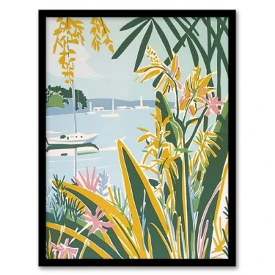 Artery8 Summer Marina Coastal Wildflowers Pastel Colour Living Room Artwork Framed Wall Art Print A4