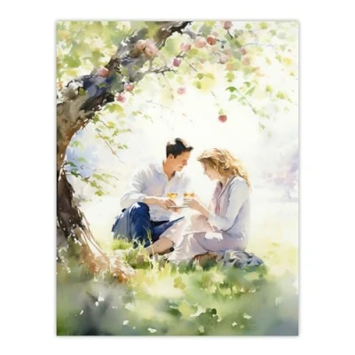 Artery8 Summer Romance Watercolour Painting Picnic Under Apple Blossom Tree Bedroom Art Extra Large XL Wall Poster Print
