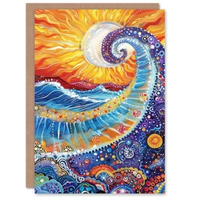 Artery8 Summer Sun Seascape Wave Colourful Folk Art For Her Woman Birthday Card