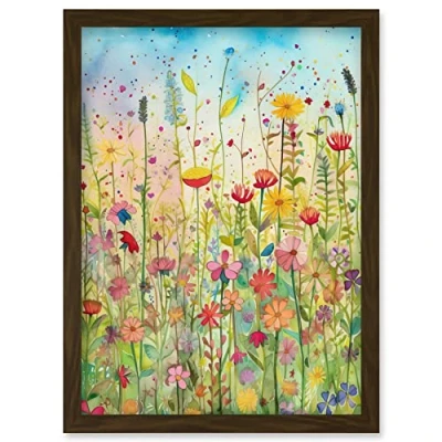 Artery8 Summer Wild Flower Blossom Meadow Folk Art Artwork Framed Wall Print A4