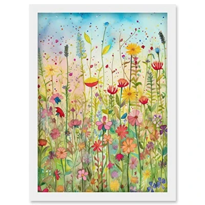 Artery8 Summer Wild Flower Blossom Meadow Folk Art Artwork Framed Wall Print A4