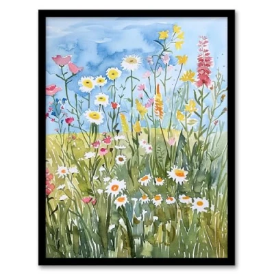 Artery8 Summer Wildflower Meadow Floral Watercolour Living Room Artwork Framed Wall Art Print A4