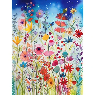 Artery8 Summer Wildflower Meadow Folk Art Large Wall Poster Print Thick Paper 18X24 Inch