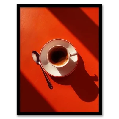 Artery8 Sunrise Coffee Cup Shadow Red Aerial View Kitchen Artwork Framed Wall Art Print A4