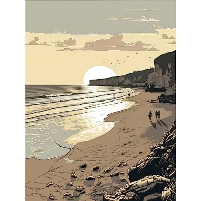 Artery8 Sunrise Walk on Filey Beach Coastal Illustration Large Wall Art Poster Print Thick Paper 18X24 Inch
