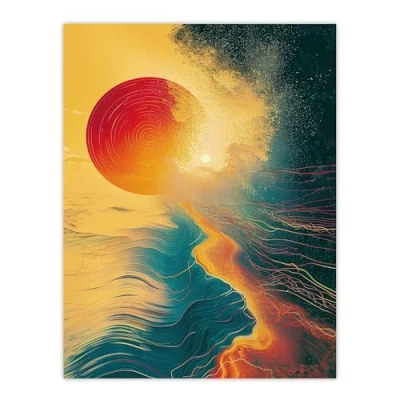 Artery8 Sunset Waves Surreal Seascape Abstract Painting Living Room Bathroom Extra Large XL Wall Art Poster Print