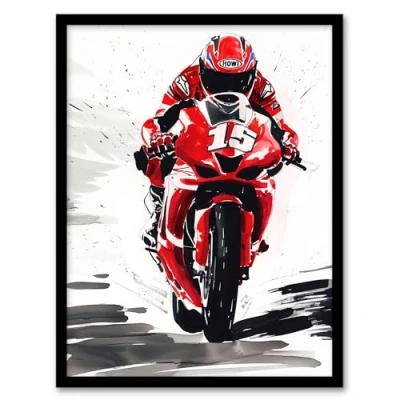 Artery8 Superbike Race Red Motorcycle Racing Action Shot Man Cave Artwork Framed Wall Art Print A4