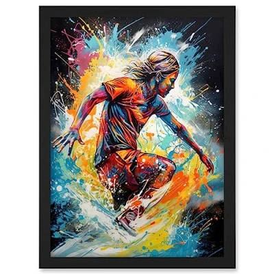 Artery8 Surfer Surfing on Splatter Paint Crashing Waves Artwork Framed A3 Wall Art Print