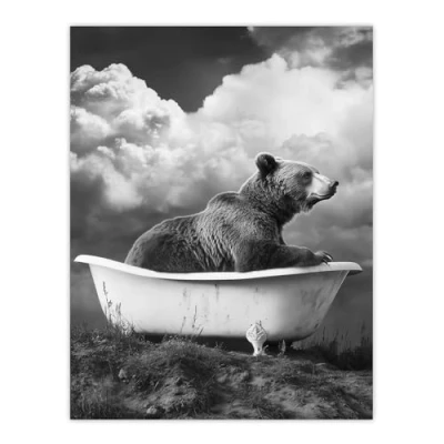Artery8 Surreal Bear in Bathtub Black White Bath Time Bathroom Toilet Extra Large XL Wall Art Poster Print