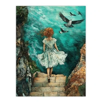 Artery8 Surreal Dream Dive Girl Stone Steps Sea Birds Bathroom Toilet Extra Large XL Wall Art Poster Print