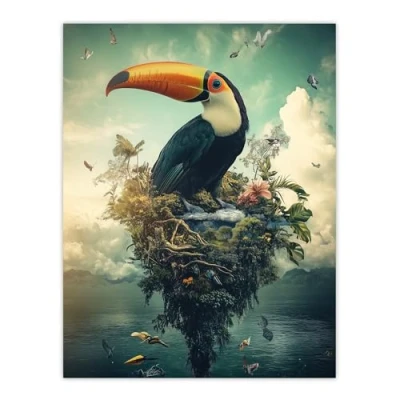 Artery8 Surreal Fantasy Toucan Bird Nature Retreat Living Room Large Wall Art Poster Print Thick Paper 18X24 Inch