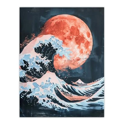 Artery8 Surreal Great Wave Blood Moon Sea Storm Painting Living Room Extra Large XL Wall Art Poster Print