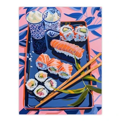 Artery8 Sushi Colourful Stylised Food Flatlay Painting Kitchen Extra Large XL Wall Art Poster Print