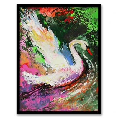 Artery8 Swan Landing on Lake Colourful Painting Living Room Artwork Framed Wall Art Print A4
